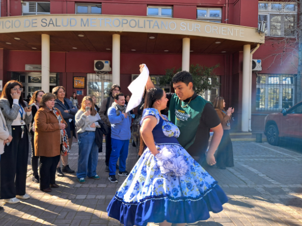 Las actividades comenzaron con el tradicional esquinazo en el frontis del Servicio de Salud Metropolitano Sur-Oriente (SSMSO), llevado a cabo por la agrupación folclórica «Los ST», compuesto por estudiantes, egresados y titulados de Santo Tomás Puente Alto, quienes deleitaron a funcionarios y pacientes del recinto con sus bailes, compartiendo pies de cuecas con ellos.