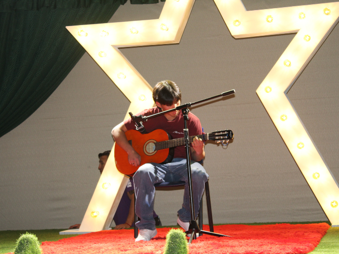 Benjamín Caulli, alumno de la carrera Técnico en Enfermería, participó como intérprete guitarrista, durante el Festival de Talentos Tomasinos 2025.