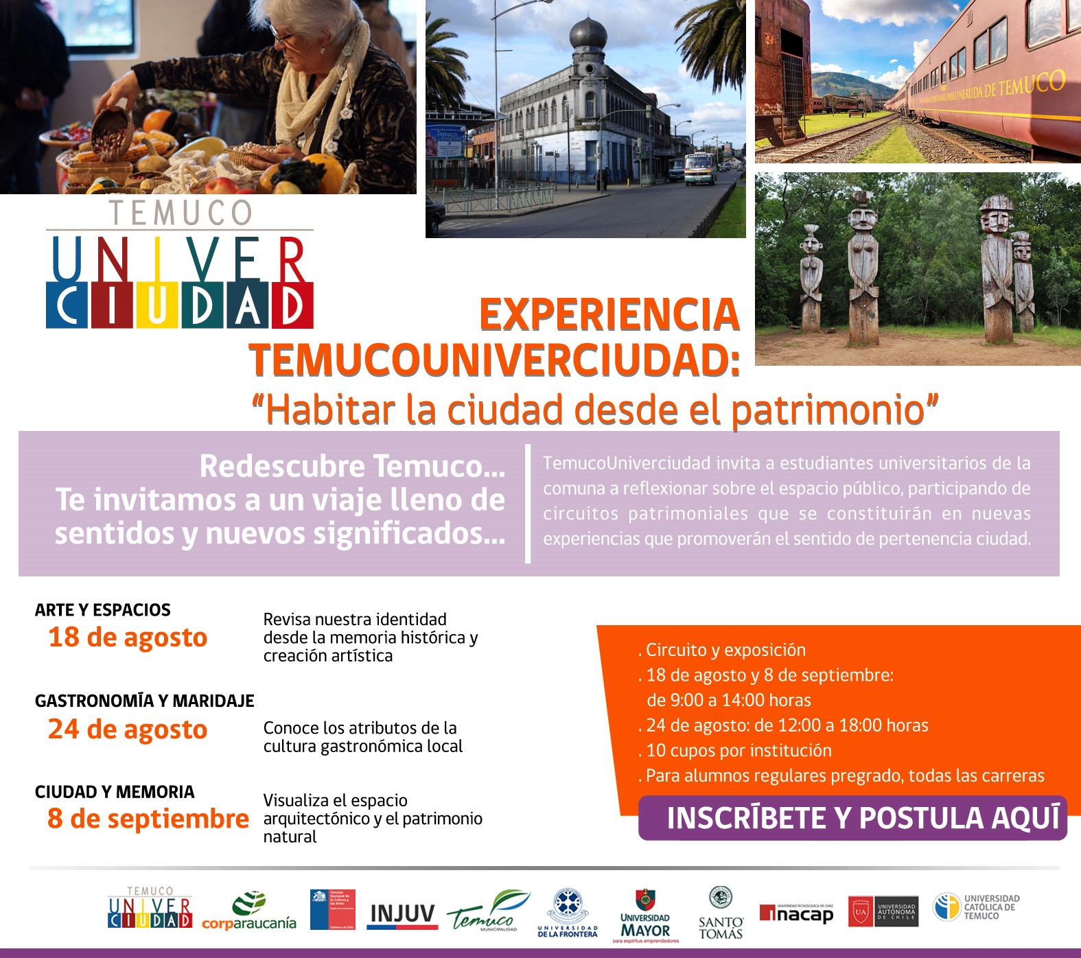 TemucoUniverciudad invita a estudiantes universitarios a reflexionar sobre el espacio público, participando de tres circuitos patrimoniales que se constituirán en nuevas experiencias que promoverán el sentido de pertenencia ciudad.