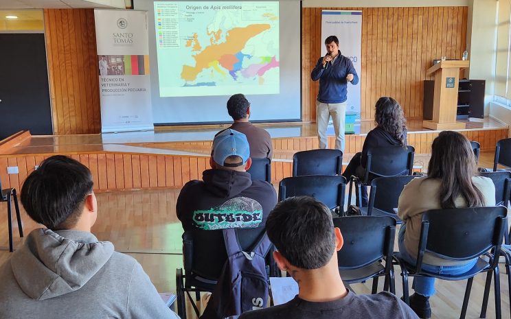 La iniciativa se concretó con la charla «Apicultura sostenible y sus proyecciones en la Región de Los Lagos», impartida por Francisco Nualart Vio, encargado del Programa Apícola de la Municipalidad de Puerto Montt, en el auditorio 1 de Santo Tomás. La actividad, dirigida a estudiantes de Técnico en Veterinaria y Producción Pecuaria, busca sembrar el interés en un área que no solo es productiva, sino también vital para el ecosistema.