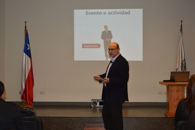 El experto relator realizó una charla dirigida a los alumnos del área administración de la sede Santiago Centro, en que explicó los pasos principales para que una presentación sea adecuada.