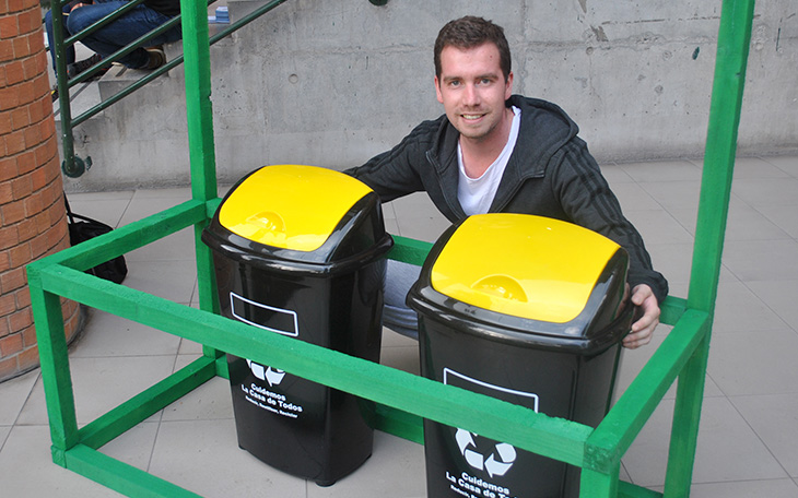 Nicolás Flores, alumno de Fonoaudiología, explica que “presenté el proyecto en el primer semestre. Siempre me ha gustado el tema del reciclaje y ya venía pensando la idea hace tiempo porque creo que es importante crear conciencia y cuidar el medio ambiente. Una vez que me aprobaron el proyecto vino la parte más difícil, ajustarse al presupuesto y conseguir a las personas que vinieran a retirar los elementos”.