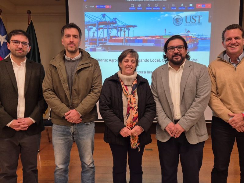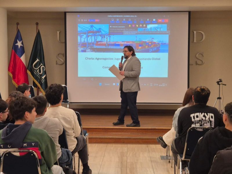 Durante la jornada expusieron Nicolás Holmgren, gerente comercial en Grupo Jorge Schmidt Exports, quien abordó la estrategia de internacionalización de esta empresa chilena presente en más de 15 países; Facundo Porolli, gerente comercial en Agrosuper, quien compartió la experiencia de una compañía líder en proteínas animales con operaciones en más de 60 mercados; Gonzalo Aranda, académico de la Escuela de Agronomía UST, quien analizó las tendencias actuales del sector agropecuario; y Andrés Villegas, jefe de carrera de Agronomía, quien destacó el rol estratégico de la vinculación con el medio y la importancia de preparar profesionales conectados con el entorno productivo.