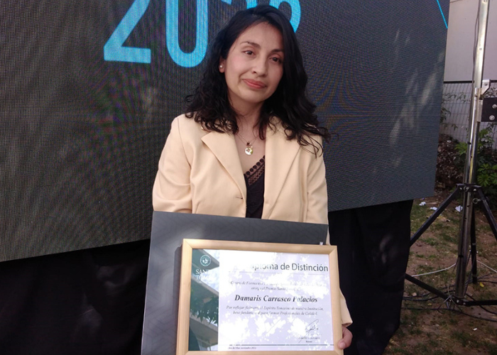 Damaris Carrasco egresó de Técnico Jurídico, carrea que estudió al mismo tiempo que trabajaba en Santo Tomás como asistente de Biblioteca. “No me esperaba este premio, pensé que sería para otra persona, así que estoy muy contenta, emocionada y le doy gracias a Dios. Me esfuerzo por trabajar y estudiar, luchar por mis metas, y ahora verlo aquí, reflejado en este premio, me dice que lo he hecho bien. Se lo dedico a Dios y a mi hija, para que algún día ella sea mucho mejor que yo, sé que lo va a lograr porque es una niña muy inteligente, muy habilosa”, dice.