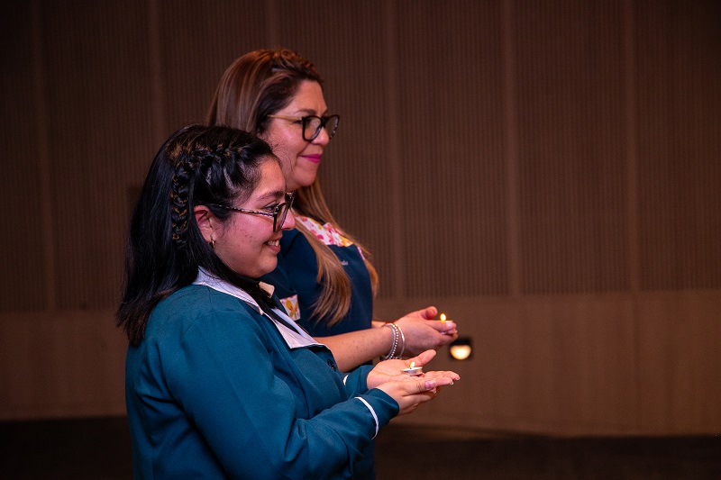 El encuentro finalizó con la tradicional Ceremonia de la Luz, un momento cargado de simbolismo, donde las estudiantes Maite Avendaño (Plan Regular) y Paola Guaico (Segunda Titulación) representaron a sus respectivas generaciones.