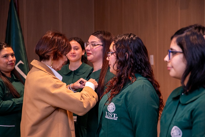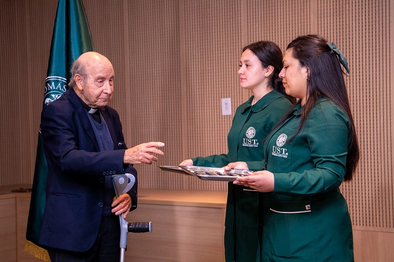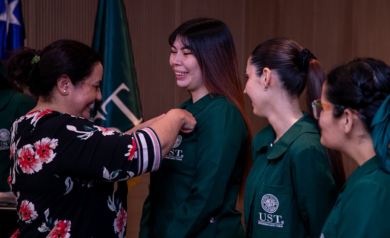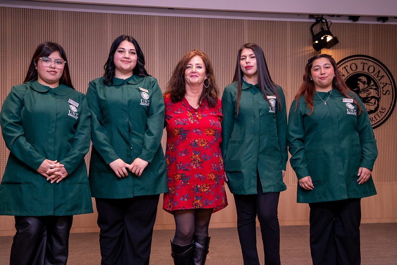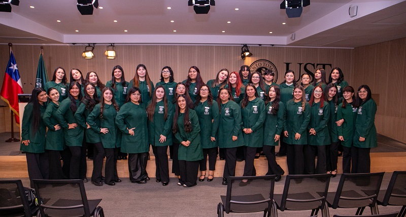 La ceremonia fue encabezada por el Capellán Nacional de Santo Tomás, Reverendo Padre José García Patiño, y contó además con la participación de la Directora Nacional de la carrera, Sra. Claudia Ormeño, la jefa de carrera Sandra Rodríguez y docentes. A esta significativa instancia se sumaron también familiares y amistades de las estudiantes, quienes las acompañaron con orgullo en este trascendente hito académico.