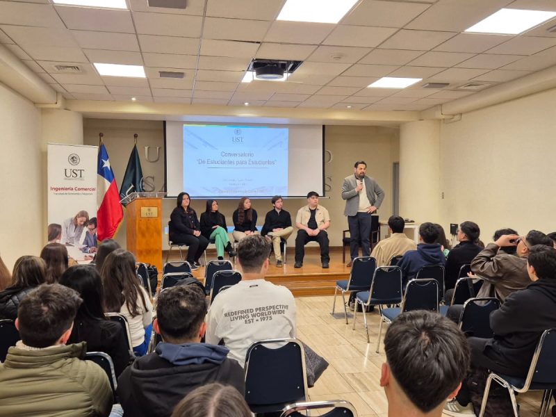 El conversatorio reunió a estudiantes avanzados de la carrera Ingeniería Comercial para compartir, desde su propia experiencia, las múltiples instancias que complementan la formación académica: ayudantías de cátedra, participación en proyectos de investigación, programas de intercambio internacional y actividades estudiantiles comunitarias. La actividad busca motivar a los estudiantes de cursos iniciales a involucrarse en estas oportunidades, fortalecer su sentido de pertenencia y enriquecer su trayectoria universitaria, mostrando cómo estas vivencias contribuyen tanto al desarrollo personal como profesional.