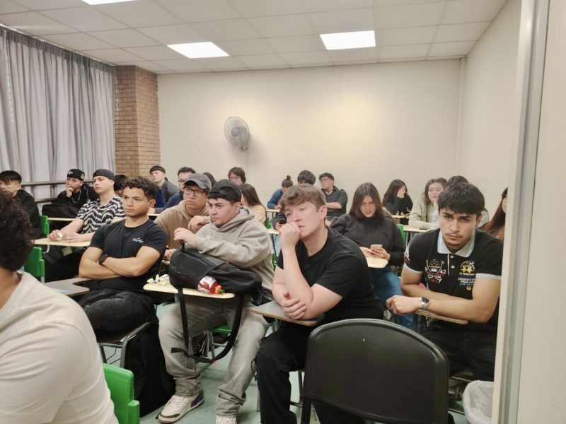 Los invitados, Edgardo Martínez, Gerente Comercial de la empresa Bosch Rexroth, empresa multinacional que opera en Chile y el mundo, y Jean Paul Marincovich, egresado el año 2022 de la carrera Ingeniería Comercial, y colaborador de la misma empresa, respondieron a interesantes y concretas preguntas que los estudiantes pudieron realizar durante la jornada.